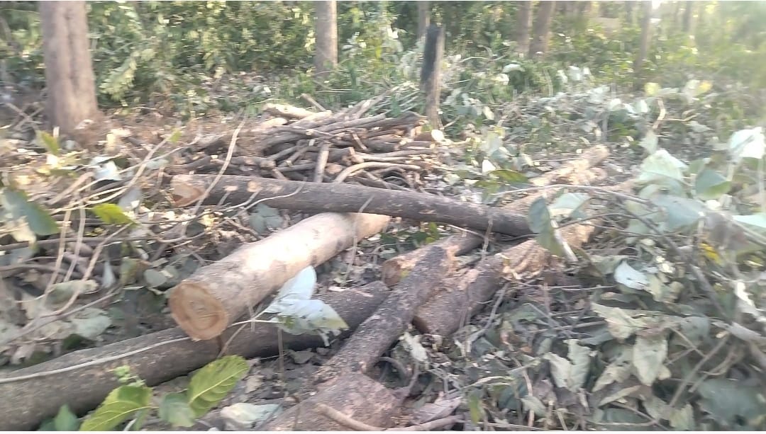 बरहपुर पाण्डेय में बिना परमिट के सागौन का पेड़ काटने पर हुई कार्रवाई
