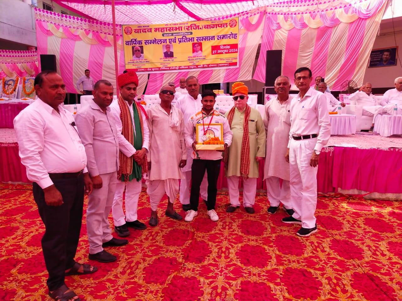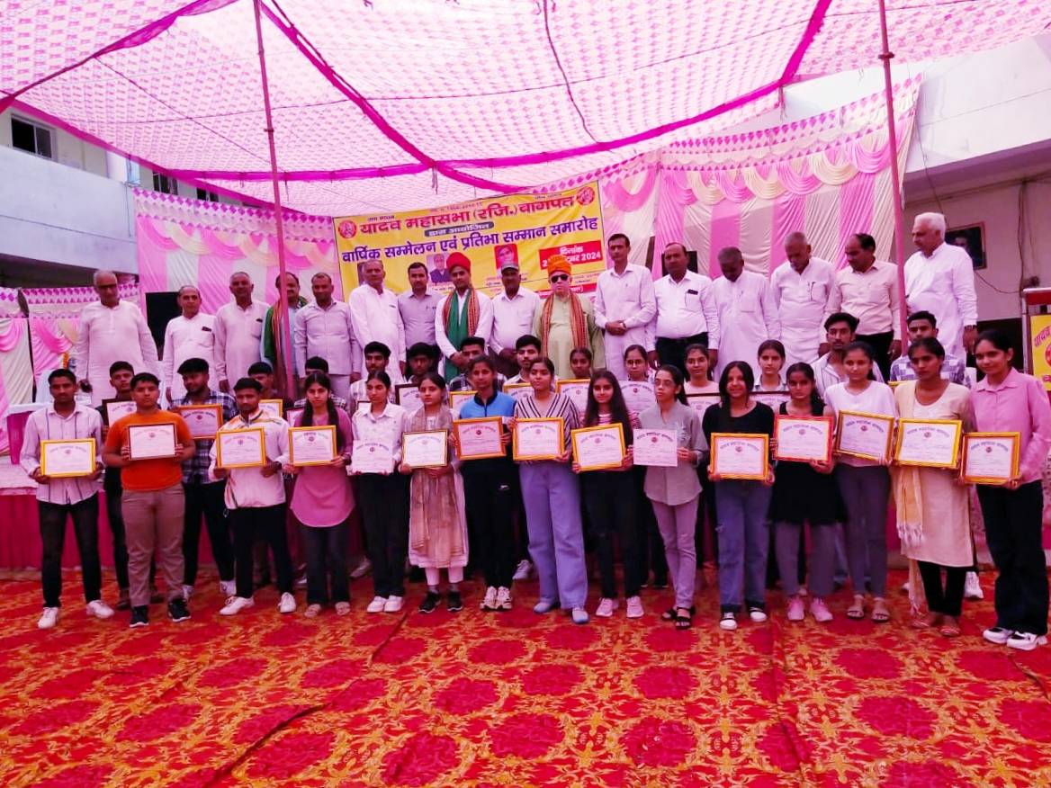 यादव महासभा बागपत ने हाईस्कूल व इण्टर कक्षा में 80 प्रतिशत से अधिक अंक लाने वाले वर्ष 2023 व वर्ष 2024 के मेधावी विद्यार्थियों को माला पहनाकर, प्रशस्ति पत्र, स्मृति चिन्ह व उपहार भेंट कर सम्मानित किया। महासभा के सचिव राजेन्द्र यादव द्वारा सभी अतिथियों व उपस्थित सदस्यों व बच्चों का स्वागत व अभिनन्दन किया गया।
